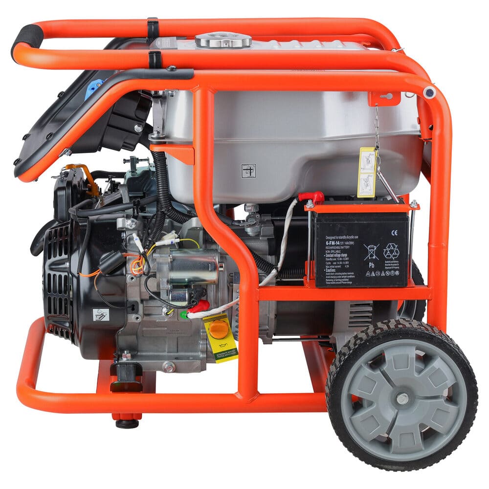 Электрогенератор EVOline KB 6000 E – бензиновый однофазный (1 фазный) генератор с максимальной мощностью 5,5 кВА. Силовым агрегатом данной модели является четырехтактный двигатель ZONGSHEN GB 420 E. Рама выполнена из высококачественной стали, которая служит не только для защиты двигателя, но и для удобной транспортировки электростанции. Объем топливного бака составляет 32 литра, что дает примерно 13 часов непрерывной работы в зависимости от нагрузки. Уровень шума при работе генератора составляет 74,5 дБ. Данная модель идеально подходит как для дома, так и для малого или среднего бизнеса. Оснащена транспортировочным комплектом с колесами, счетчиком мото-часов и 2-мя розетками (одна из которых - силовая, т.е. на 32А), имеет размер (70х53х59 см) и вес (87 кг). Отличие от модели KB 6000 в том, что в данной модели установлен электрический стартер для более комфортного и простого запуска. Гарантия составляет 2 года.