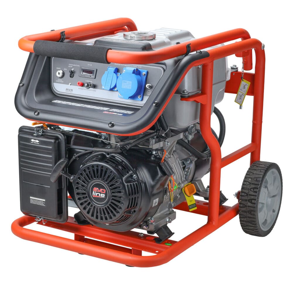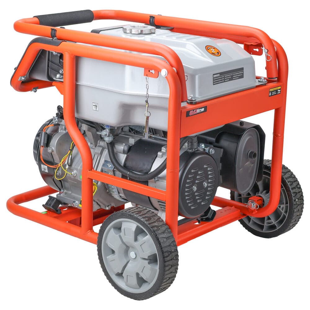Электрогенератор EVOline KB 6000 – бензиновый однофазный (1 фазный) генератор с максимальной мощностью 5,5 кВА. Силовым агрегатом данной модели является четырехтактный двигатель ZONGSHEN GB 420. Рама выполнена из высококачественной стали, которая служит не только для защиты двигателя, но и для удобной транспортировки электростанции. Объем топливного бака составляет 32 литра, что дает примерно 13 часов непрерывной работы в зависимости от нагрузки. Уровень шума при работе генератора составляет 74,5 дБ. Данная модель идеально подходит как для дома, так и для малого или среднего бизнеса. Оснащена транспортировочным комплектом с колесами, счетчиком мото-часов и 2-мя розетками (одна из которых - силовая, т.е. на 32А), имеет размер (70х53х59) см и вес (79 кг). Гарантия составляет 2 года.