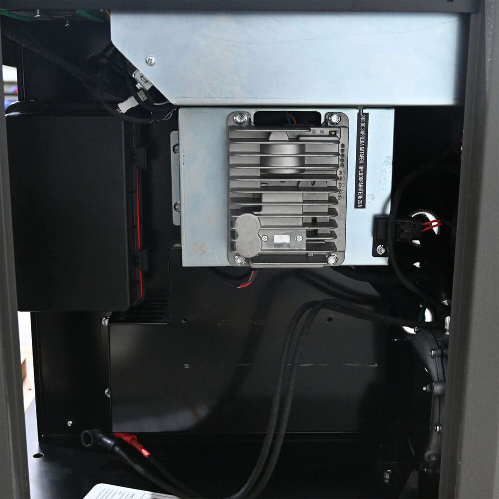Благодаря защитному шумозащитному кожуху из алюминия, GNG 9350 E можно устанавливать на улице. Электронная система управления с многоязычным цифровым дисплеем поможет разобраться в управлении станцией, а светодиодная индикация подскажет когда необходимо провести техническое обслуживание.